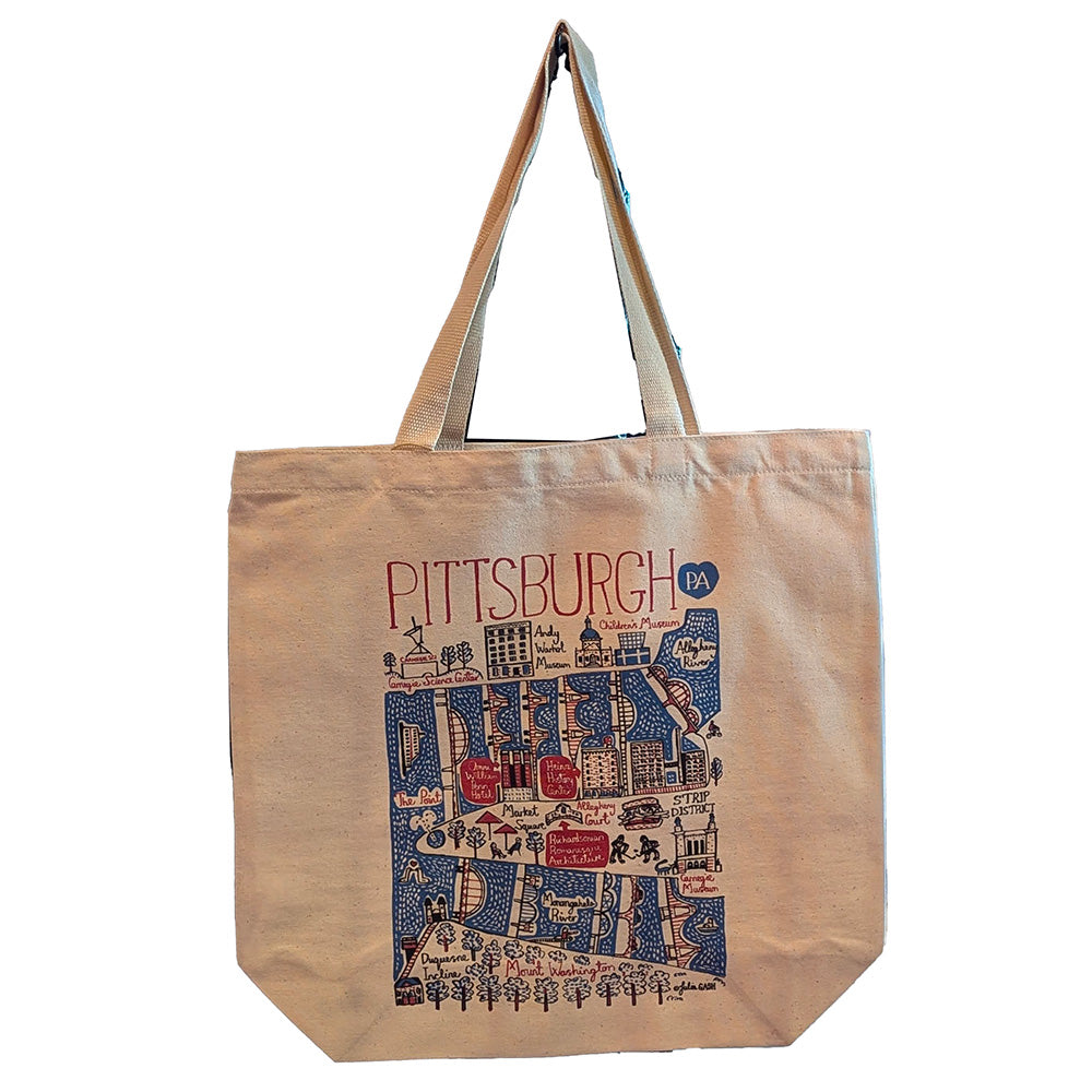 Show your love for your city with this Illustrated Pittsburgh Tote Bag. Featuring sturdy handles and a an illustrated graphic of the city of Pittsburgh, this tote will be your new carry-everywhere bag!