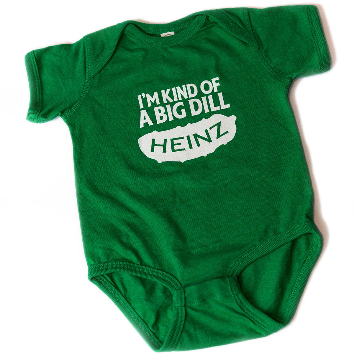 "I'm Kind of a Big Dill" onesie, available in 4 sizes (6 months, 12 months, 18 months, 24 months)